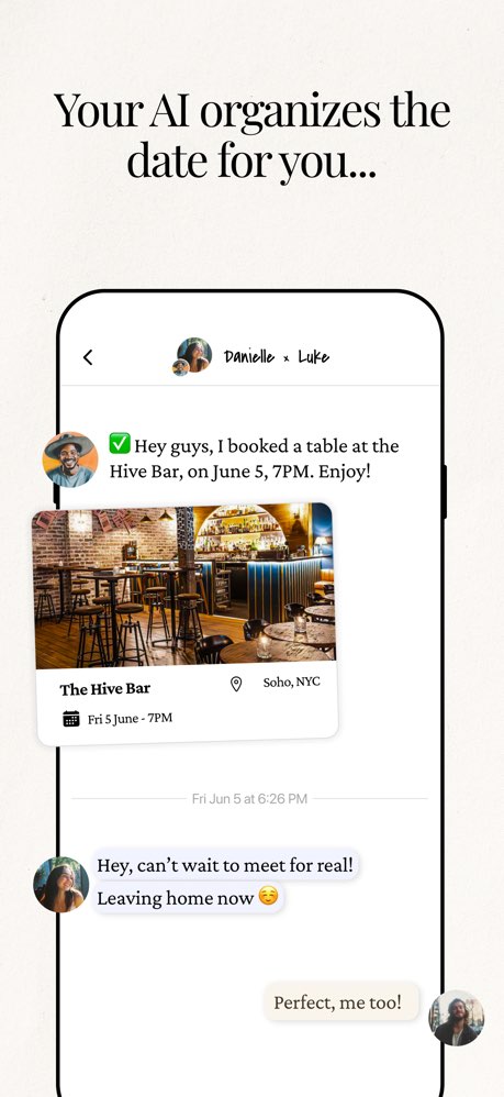 The AI matchmaker learns from every conversation and date, getting smarter over time. Eliminates the worst parts of dating apps: swiping, small talk, and ghosting. Handles all the logistics — availability, restaurant booking, everything. Feels more like being set up by a friend than using an app. Focus on intentional dating filters out people who aren't serious.