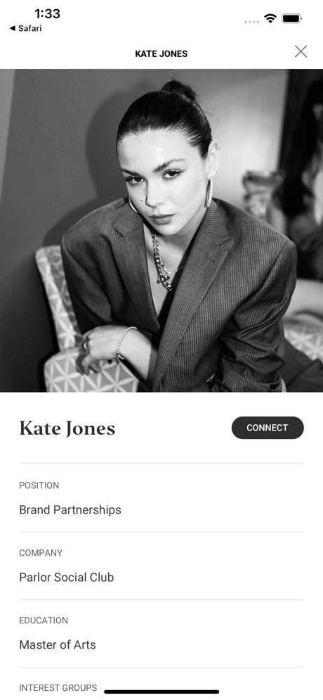 Download the app and submit an application. Parlor reviews every applicant to maintain a curated community of creatives, professionals, and tastemakers. Once accepted, you set your interests across culture, business, and health & wellness. The app builds a personalized event calendar — think gallery openings, supper clubs, wellness workshops, and professional mixers — and recommends members you're likely to click with. RSVP to events that catch your eye, connect with other members before or after, and let Parlor handle the curation. The algorithm learns from your feedback to refine your recommendations over time.