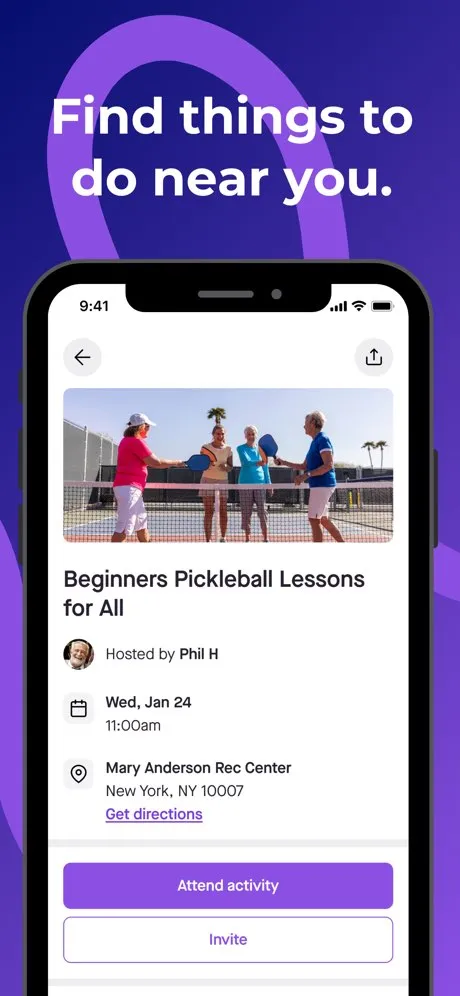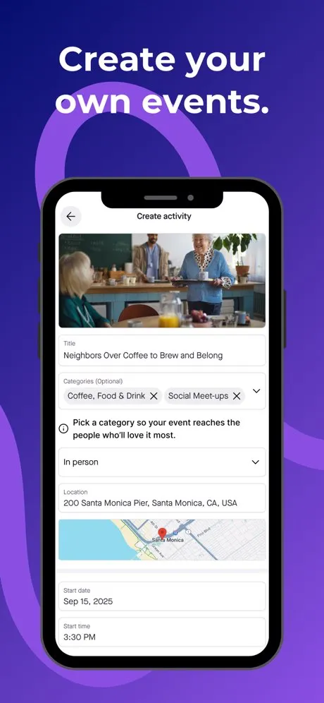 Browse and join local activities — walks, coffee meetups, happy hours, tours — designed specifically for adults 55+ who want to stay social without wading through apps built for twenty-somethings.