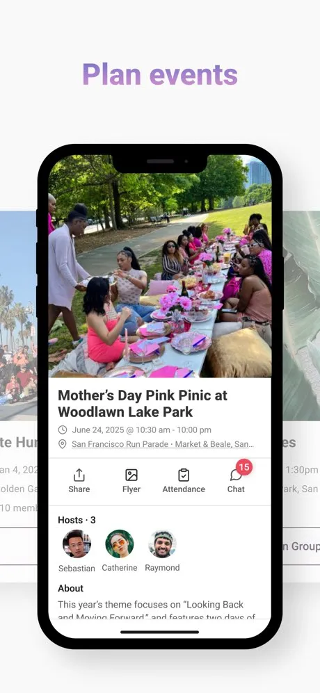Events, payments, and chat for community groups.