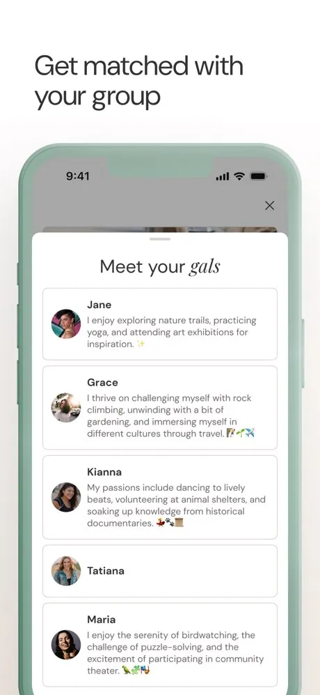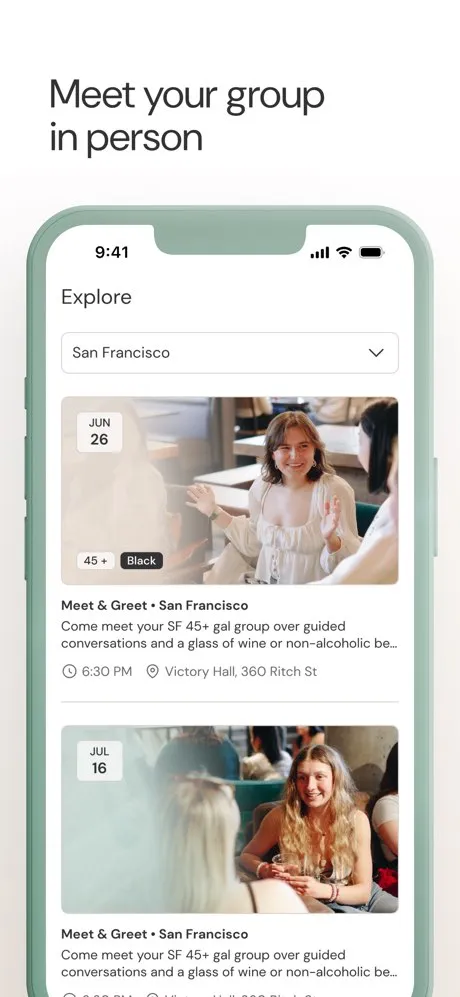 Get matched with a small group of women in your city, meet weekly with a trained facilitator for six weeks, then join an alumni community — it's a structured friendship program, not another matching app.