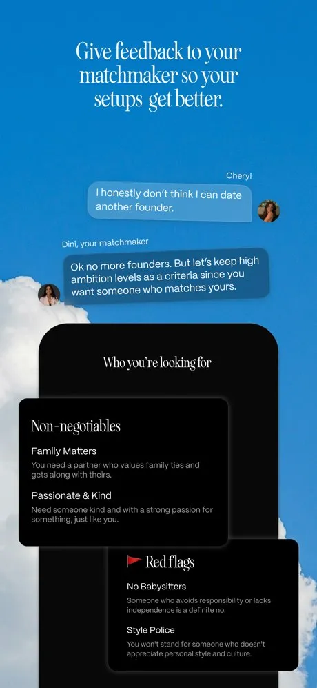 People who are burned out on swiping and want someone else to do the filtering. Singles who value intentionality and are looking for something serious. Anyone in New York who wants a concierge-style dating experience. People who'd rather answer deep questions than swipe on photos.