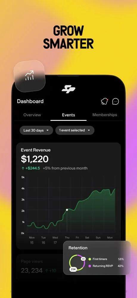 Download the app, set your location, and browse a feed of fitness and wellness experiences happening near you — everything from sunrise yoga to weekend hikes to pickleball meetups. Join a community built around your favorite activity and chat with other members. When an event catches your eye, book a ticket directly in the app. If you're a host, you can create events, manage memberships, collect payments and waivers, and even send SMS blasts to your community — all from one dashboard. The discovery feed also surfaces experiences you wouldn't have found on your own, which is where the magic happens.