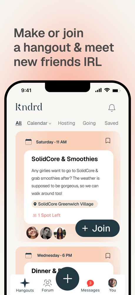 Kndrd is a community-driven app where you propose or join real-life plans — grabbing drinks, hitting a pilates class, checking out a concert — and a group chat instantly forms so everyone can coordinate. Think of it as a spontaneous social calendar powered by the people around you. Everyone on the app is manually verified, so it feels more like a curated club than a free-for-all.